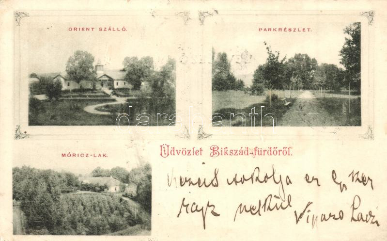 Leírás: Bikszád-fürdő, Bixad; Orient szálló, park, Móricz lak / hotel, park, villa