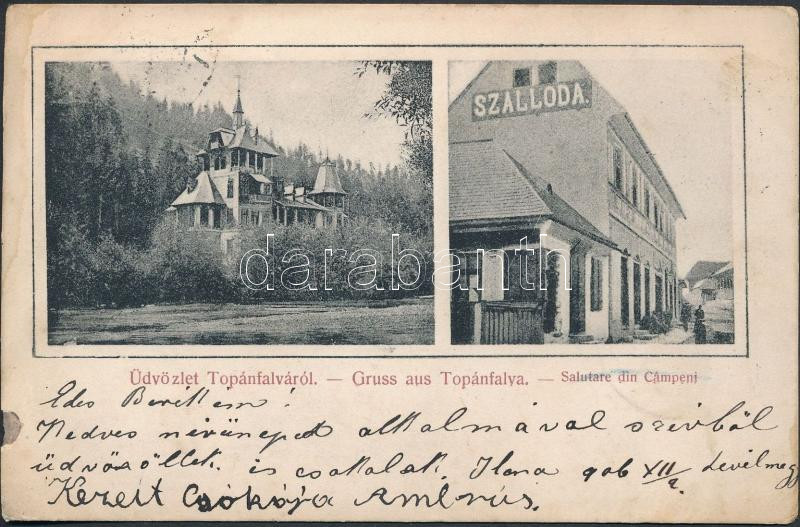 Leírás: Topánfalva, Campeni; Szálloda, villa, Csiky Testvérek kiadása / hotel, villa (kis felületi sérülés / minor surface damage)