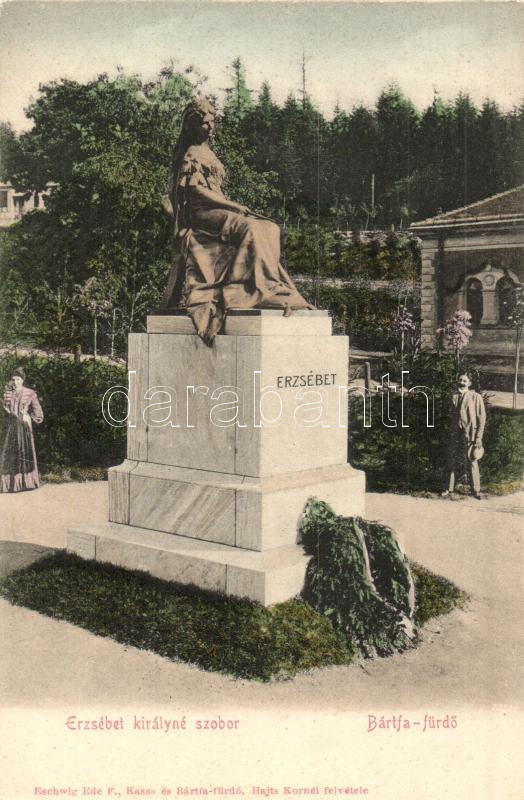 Leírás: Bártfafürdő, Bardejovské kúpele; Erzsébet királyné szobor, kiadja Eschwig Ede / statue