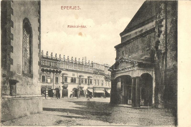 Leírás: Eperjes, Presov; Rákóczi ház, Spira Henrik, Werther és Goldwender üzlete / palace, shops