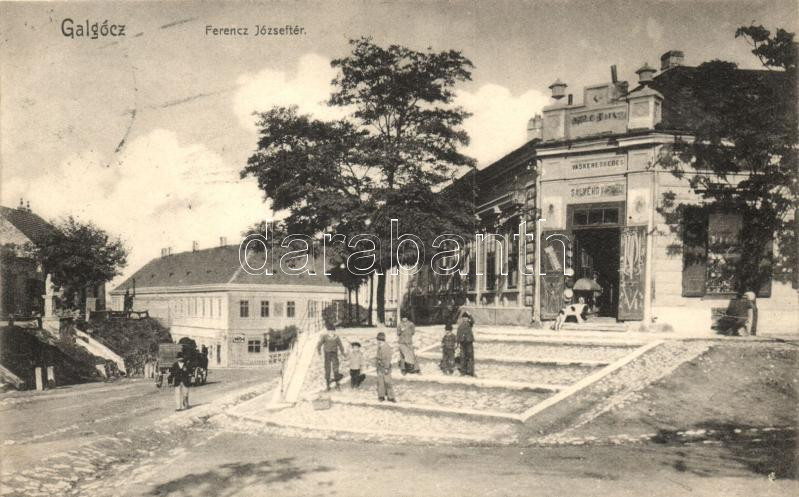 Leírás: Galgóc, Hlohovec; Ferenc József tér, Salvendy Emil vaskereskedése, Eródy kiadása / square, iron shop