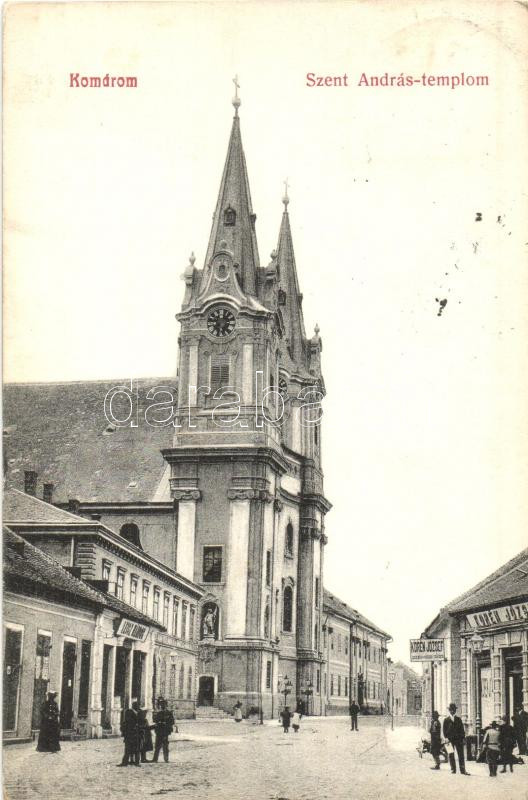 Komárom, Komárno; Szent András templom, Korén József posztó és vászon ... https://www.darabanth.com/hu/277-Gyorsarveres/277.0/Kepeslapok/Felvidek~300011/Komarom-Komarno-Szent-Andras-templom-Koren-Jozsef-poszto-es-vaszon-raktara-kiadja-Czike~II1420894