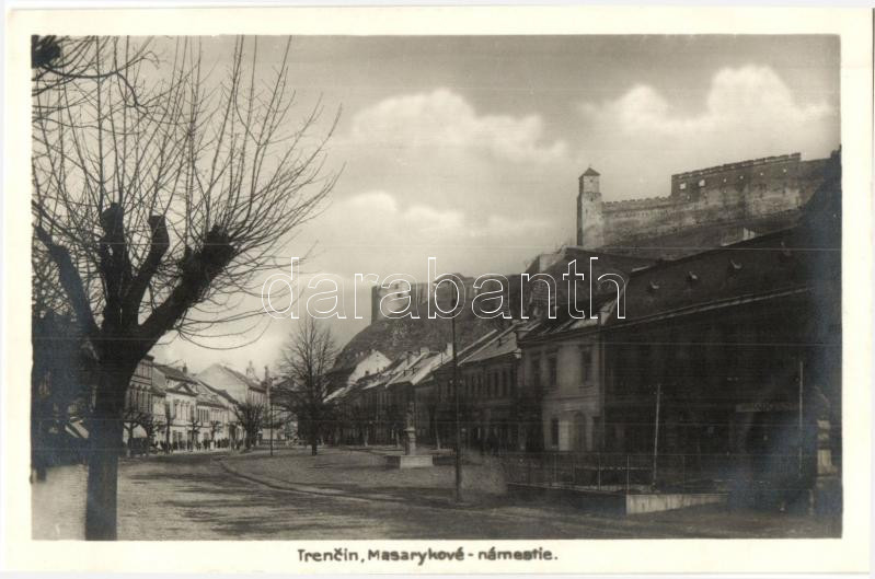 Trencsén, Trencin; Masaryk tér, vár / Masarykové námestie / square, ca... https://www.darabanth.com/hu/277-Gyorsarveres/277.0/Kepeslapok/Felvidek~300011/Trencsen-Trencin-Masaryk-ter-var-Masarykove-namestie-square-castle~II1419761