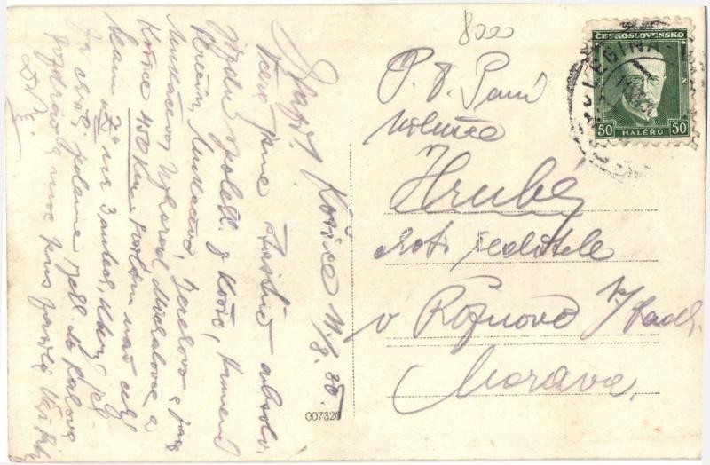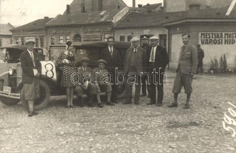 Leírás: cca 1930 Kassa, Kosice; Autóverseny, automobil, várois híd, A. Birnbaum üzlete / car race, automobile, bridge, shop, photo