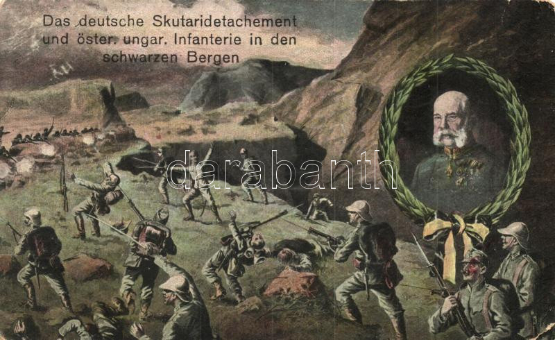 Leírás: Das deutsche Skutaridetachement und öster. ungar. Infantrie in den Schwarzen Bergen / Austro-Hungarian military, Franz Joseph (EK)