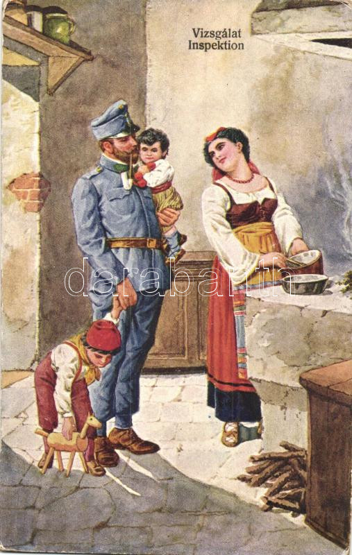 Vizsgálat / Inspektion / homecoming soldier with children https://www.darabanth.com/hu/277-Gyorsarveres/277.0/Kepeslapok/Katonai~300051/Vizsgalat-Inspektion-homecoming-soldier-with-children~II1424462
