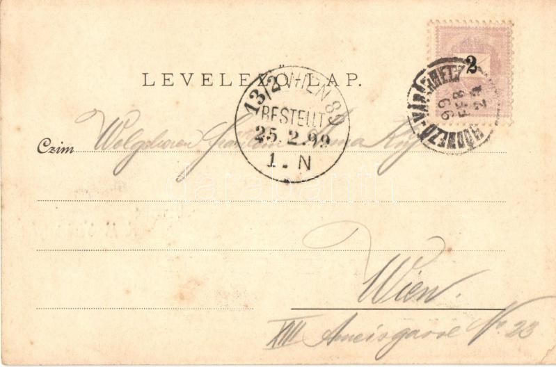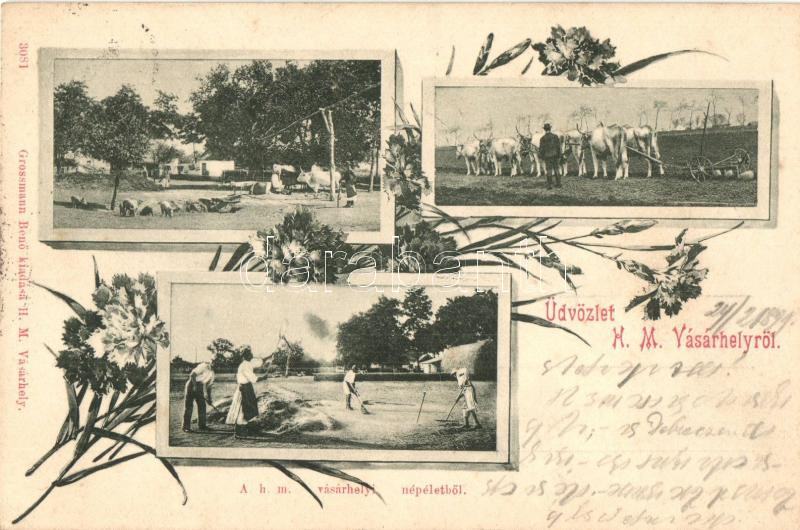 Leírás: 1899 Hódmezővásárhely, Gémeskút, ökrök, kiadja Grossmann Benő, floral (EK)