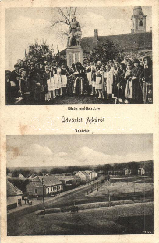 Ajka, Hősök emlékszobra, vásártér, kiadja Siklós Géza (kis szakadás / ... https://www.darabanth.com/hu/277-Gyorsarveres/277.0/Kepeslapok/Magyarorszag~300009/Ajka-Hosok-emlekszobra-vasarter-kiadja-Siklos-Geza-kis-szakadas-small-tear~II1391268