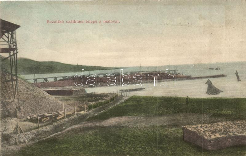 Leírás: Badacsonytomaj, Bazaltkő szállítási telep a mólóval; kiadja Rokob Kálmán (r)