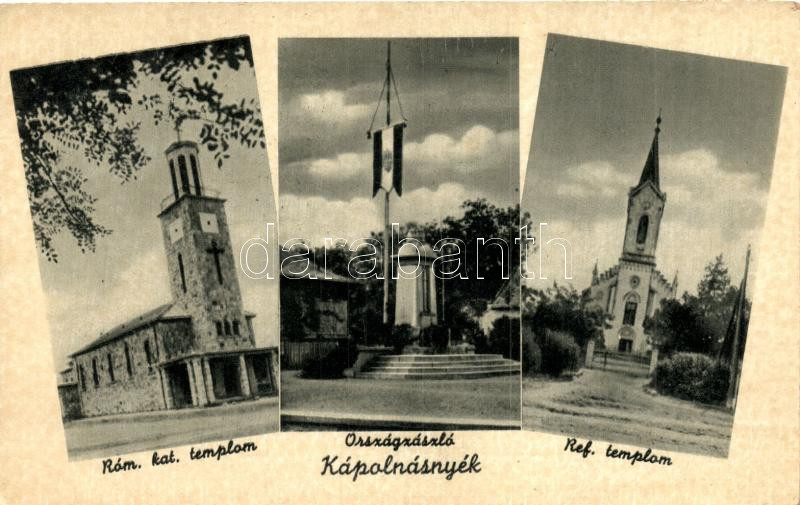 Kápolnásnyék, Római katolikus és református templom, Országzászló https://www.darabanth.com/hu/277-Gyorsarveres/277.0/Kepeslapok/Magyarorszag~300009/Kapolnasnyek-Romai-katolikus-es-reformatus-templom-Orszagzaszlo~II1424143