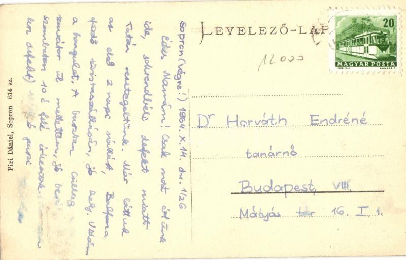 Leírás: Sopron, Alsólővér utca, kiadja Piri Dániel (1964-ben postázott!)