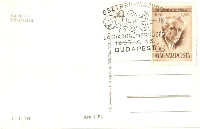 Budapest XIV. Népstadion, Képzőművészeti Alap kiadóvállalat, '1955 Osz... https://www.darabanth.com/hu/277-Gyorsarveres/277.0/Kepeslapok/Sport~300100/Budapest-XIV-Nepstadion-Kepzomuveszeti-Alap-kiadovallalat-1955-Osztrak-magyar-100-labda~II1419012