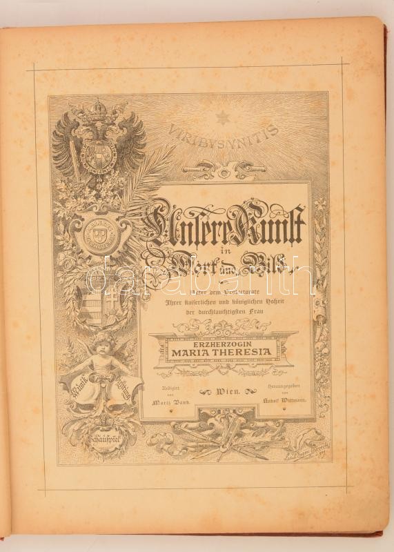 Leírás: Rudolf Wittmann, Moriz Band: Unsere Kunst in wort und bild. Wien, é.n. (1889), Reißer&Werther. Kiadói festett, aranyozott egészvászon kötés, német nyelven, egészoldalas és szövegközti fekete-fehér illusztrációkkal. Megviselt állapotban.