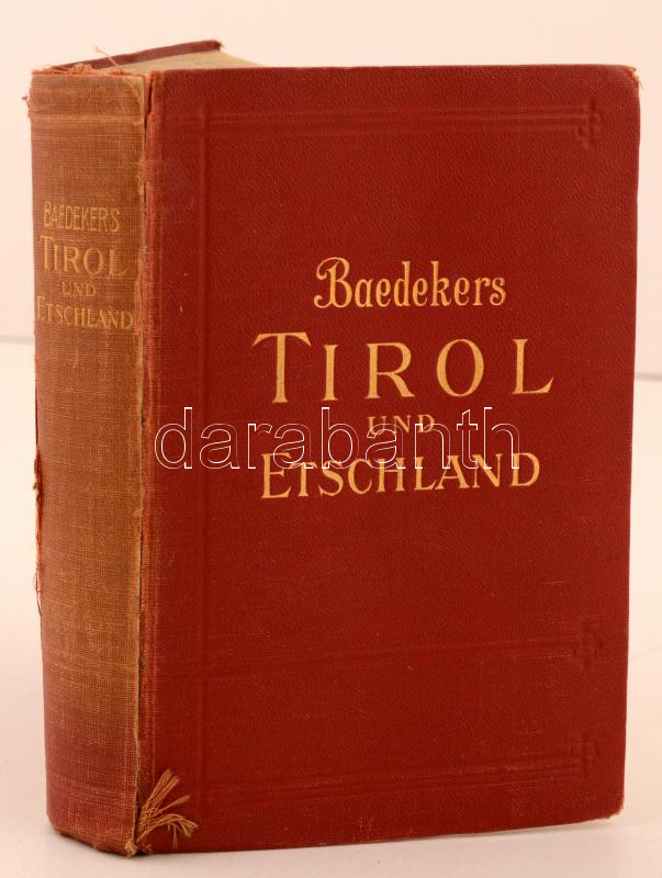 Karl Baedeker: Tirol, Voralberg, Etschland. Westliches Salzburg, und Karenten. Handbuch für Reisiende. Leipzig, 1926, Verlag von Karl Baedeker, L+540 p. 38. kiadás. Kiadói aranyozott egészvászon kötés, festett lapélekkel. Térképekkel illusztrálva. / Linen binding in German language. The spine is tattered