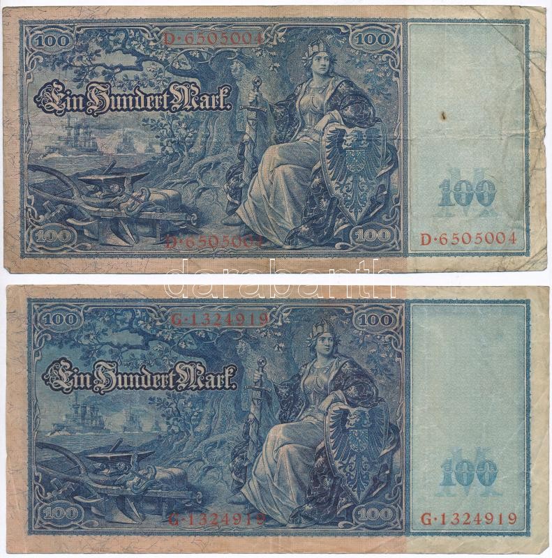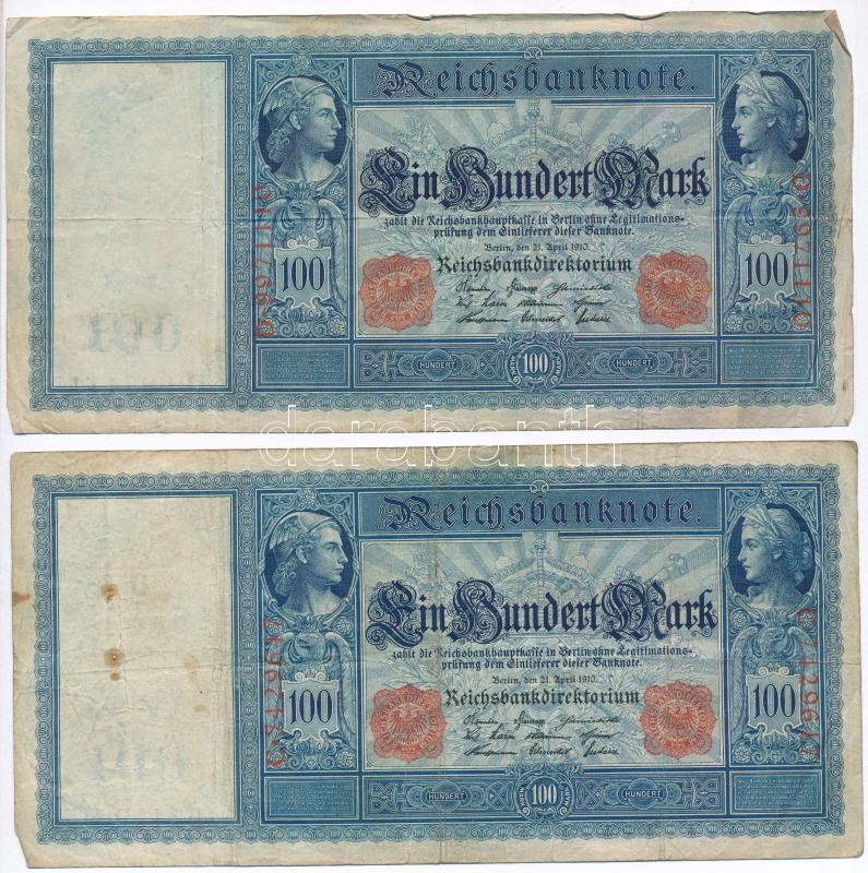 Német Birodalom / Császárság 1910. 100M piros pecsét és sorszám (5x) T... https://www.darabanth.com/hu/277-Gyorsarveres/277.0/Numizmatika/Kulfoldi-bankjegyek~400012/Nemet-Birodalom-Csaszarsag-1910-100M-piros-pecset-es-sorszam-5x-TIII-III---German-Empir~II1422341