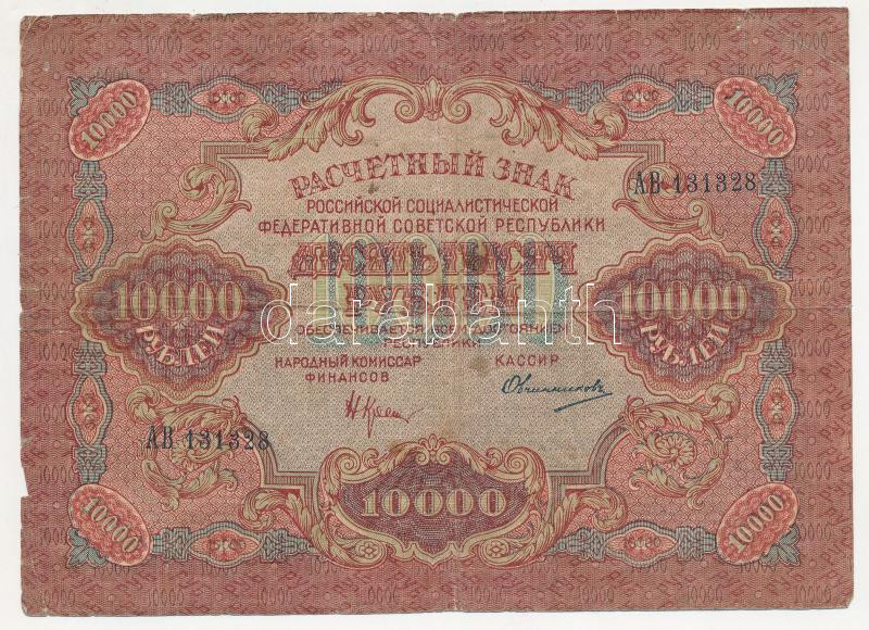 Russi... https://www.darabanth.com/hu/277-Gyorsarveres/277.0/Numizmatika/Kulfoldi-bankjegyek~400012/Szocialista-Szovetsegi-Szovjet-Koztarsasag-1919-10000R-TIII---Russian-Socialist-Federated-So~II1420263