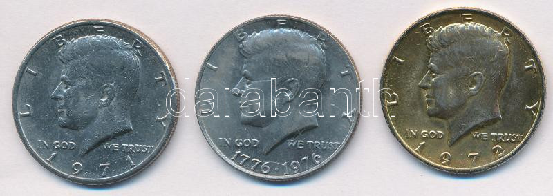 Leírás: Amerikai Egyesült Államok 1971. 1/2$ Cu-Ni "Kennedy" + 1972. 1/2$ Cu-Ni "Kennedy" aranyozva + 1976. 1/2$ Cu-Ni "Kennedy" T:2