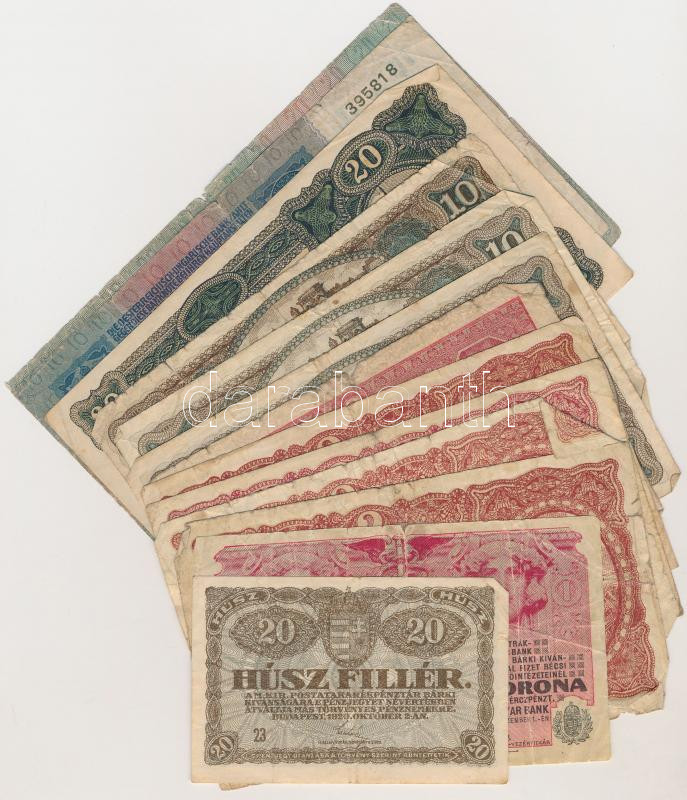 1913-1920. 13db-os vegyes magyar korona bankjegy tétel T:III,III-,IV https://www.darabanth.com/hu/277-Gyorsarveres/277.0/Numizmatika/Magyar-bankjegyek~400007/1913-1920-13db-os-vegyes-magyar-korona-bankjegy-tetel-TIII-III-IV~II1422955