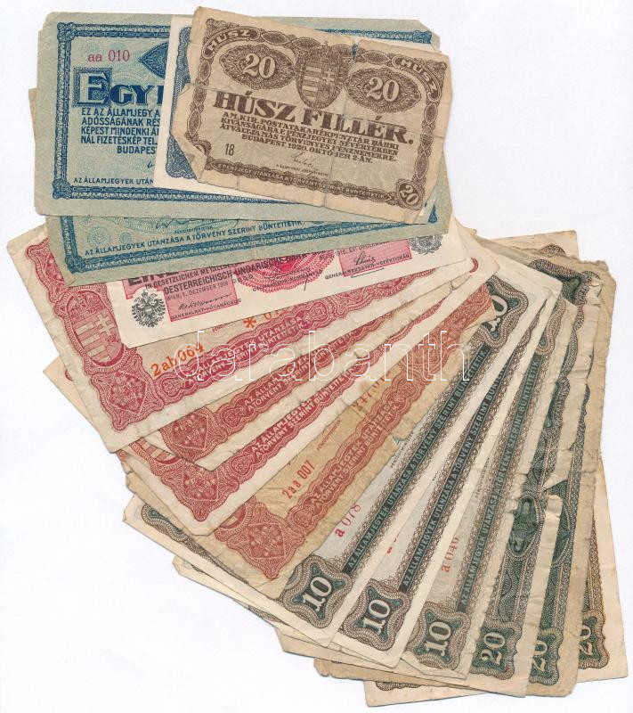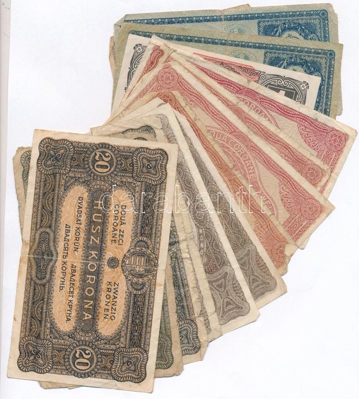 Leírás: 1916-1920. 15db-os vegyes magyar korona bankjegy tétel T:III,III-