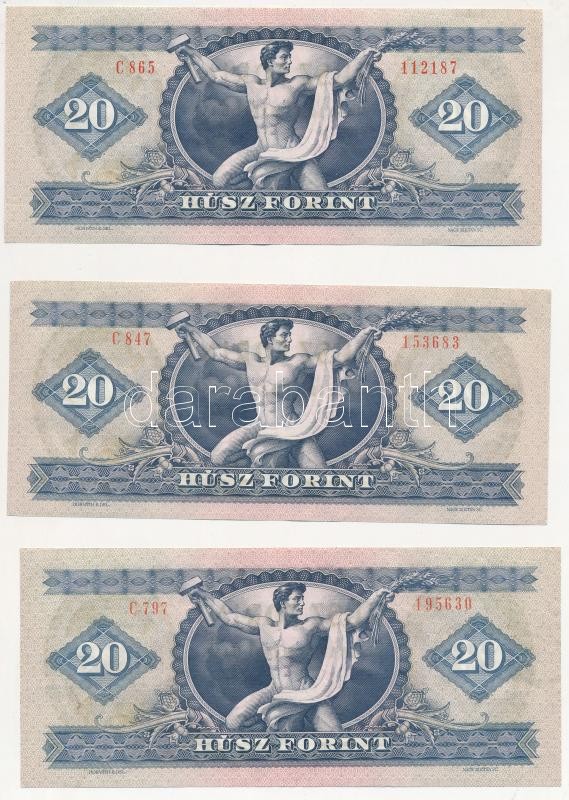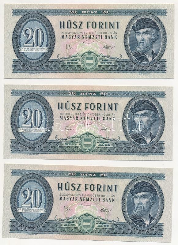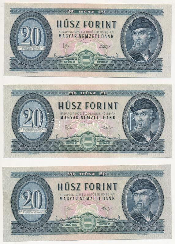 Leírás: 1975. 20Ft (6x) közte 2db sorszámkövető T:II,III szép papír