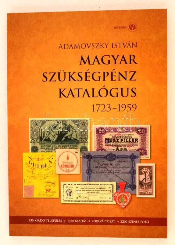 Leírás: Adamovszky István: Magyar szükségpénz katalógus 1723-1959. Budapest, Adamo, 2008.