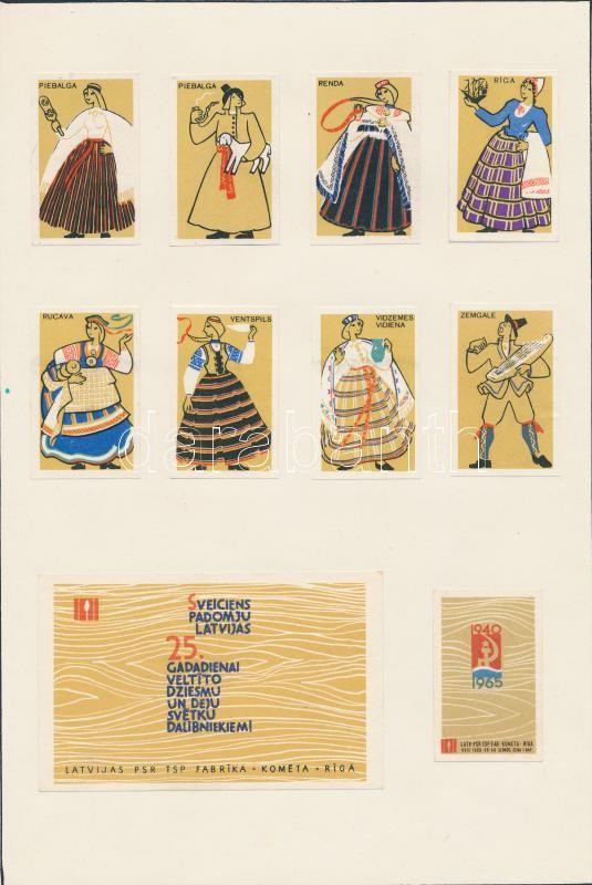 Leírás: 174 db gyufacímke és 10 db nagy szovjet gyufacímke 12 db kartonlapra ragasztva (Baltikumi népviselet, sakk, halak, nőnap, Antarktisz...stb.)