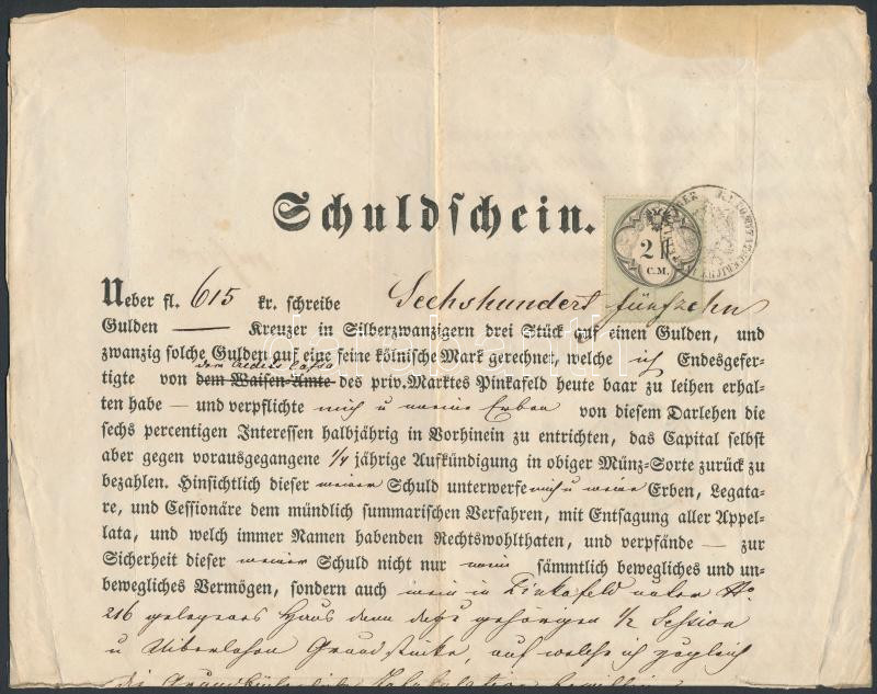 Leírás: 1858 2Fl CM okmánybélyeg adóslevélen