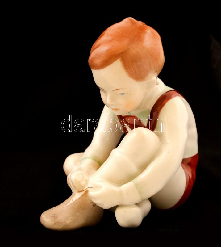 Aquincumi cipőfűző kisfiú, kézzel festett, jelzett, nagyon apró kopásnyomokkal, m: 11 cm