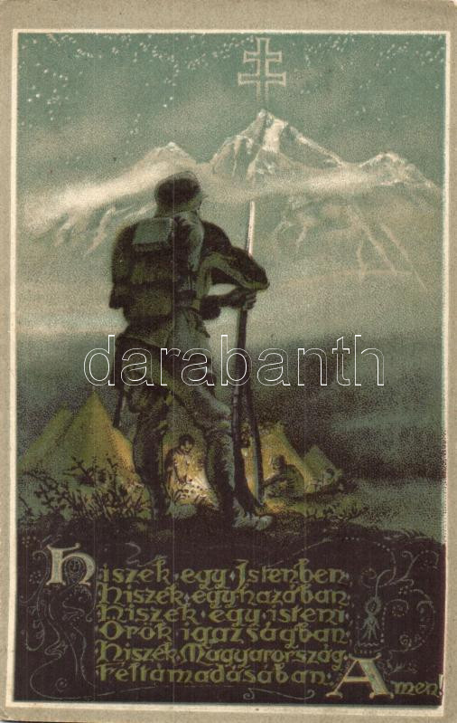 Magyar Hiszekegy, katona / Hungarian irredenta, soldier, litho (EK) https://www.darabanth.com/hu/278-Gyorsarveres/278.0/Kepeslapok/Irredenta~200034/Magyar-Hiszekegy-katona-Hungarian-irredenta-soldier-litho-EK~II1427054