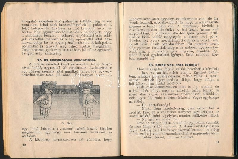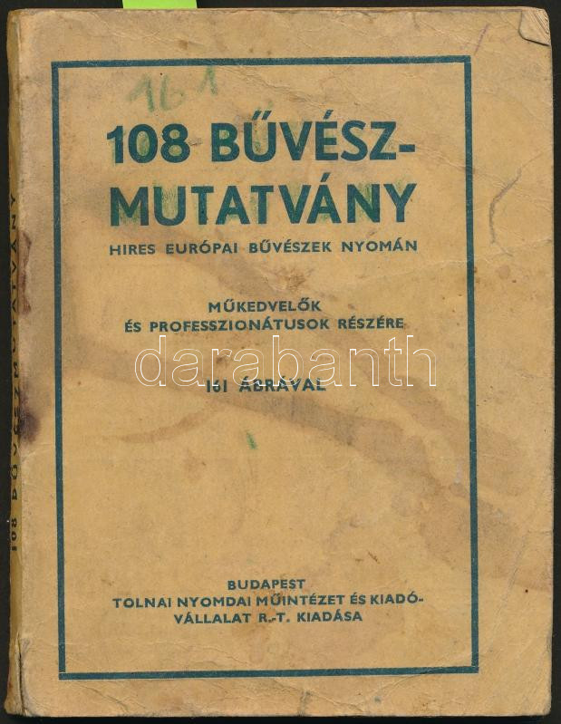 108 Bűvészmutatvány, híres európai bűvészek nyomában, műkedvelők és professzionátusok részére, 161 ábrával. Tolnai Nyomda és Kiadó, 160 p. Foltos, megviselt borító
