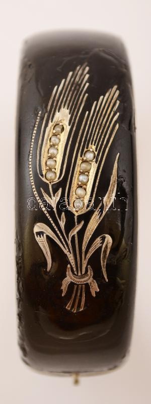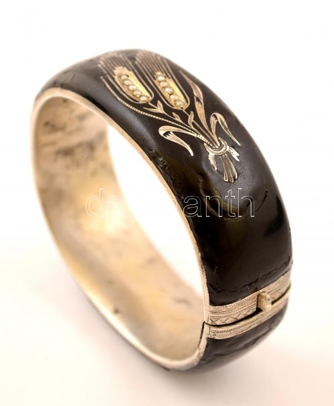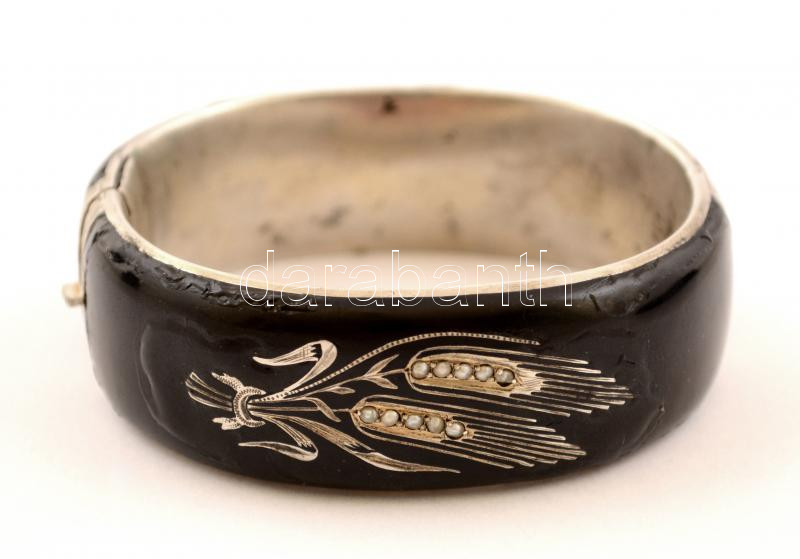 Leírás: Ezüst(Ag) karperec, fekete zománcozott díszítéssel, jelzett, 7x6 cm, br: 49,2 g