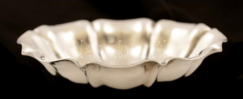 Leírás: Ezüst(Ag) ovális hullámos peremű tálka, jelzett, 8,2x7 cm, nettó: 28,3 g