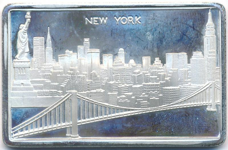 Leírás: DN "New York" jelzett Ag plakett, tanúsítvánnyal (25,99g/0.925/50x32mm) T:2 (PP)