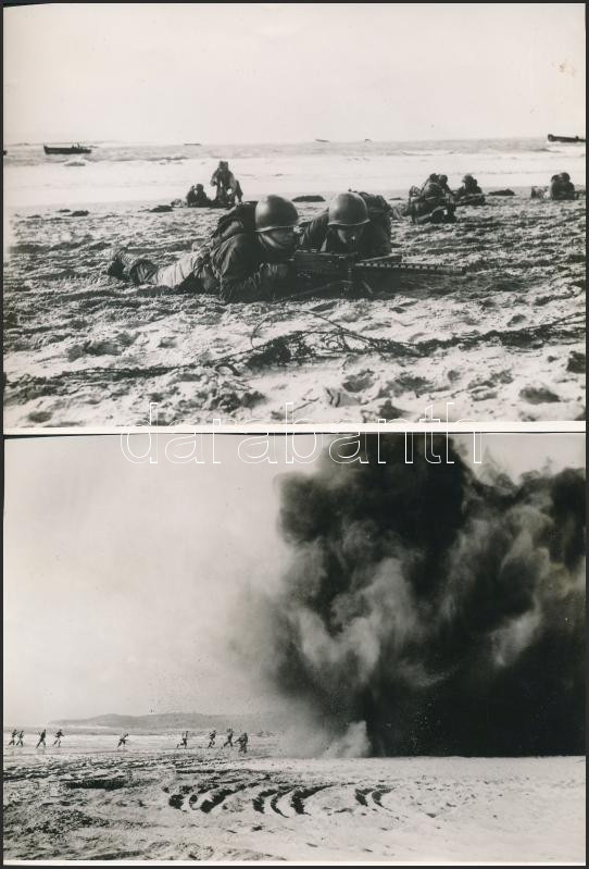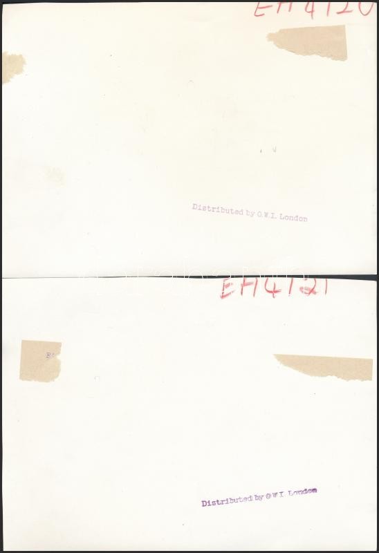 6 db. II. világháborús fotó, modern másolatok, egy részük hátán pecséttel feliratozva, az egyik hátára címke ragasztva, 14x20 és 10x15 cm. közötti méretben.