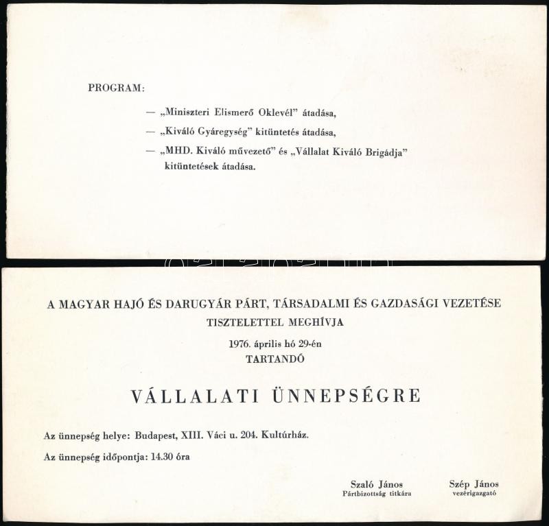 Leírás: 1976 Magyar Hajó és Darugyár két meghívója