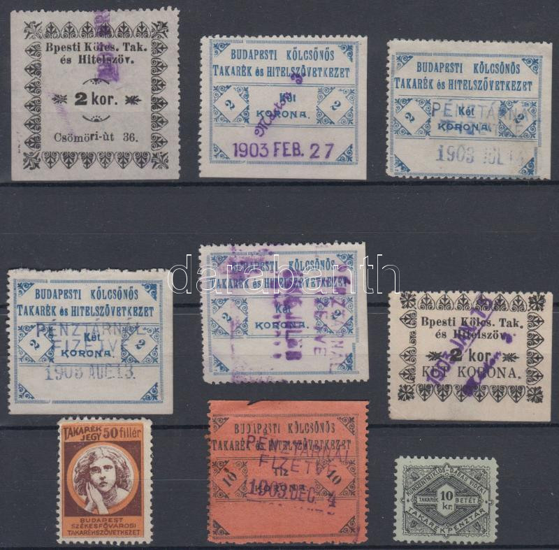 Leírás: Budapesti Kölcsönös Takarék és Hitelező Szövetkezet 2K + 10K pénztárjegyei + Kunszentmiklós - Dabas 10kr betétjegy (RR!)