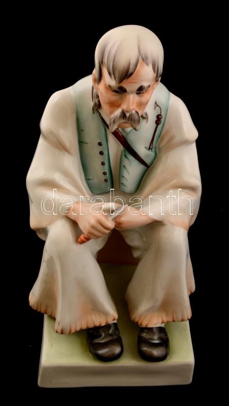 Hand painted Zsolnay porcelain figure of an old peasant, 32x24x20cm