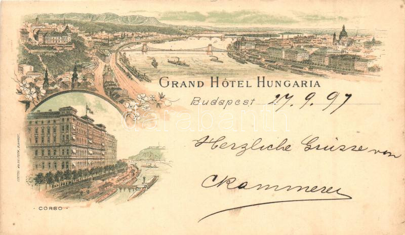 1899 Budapest, Grand Hotel Hungaria, Corso, litho https://www.darabanth.com/hu/279-Gyorsarveres/279.0/Kepeslapok/Magyarorszag~200005/1899-Budapest-Grand-Hotel-Hungaria-Corso-litho~II1435003