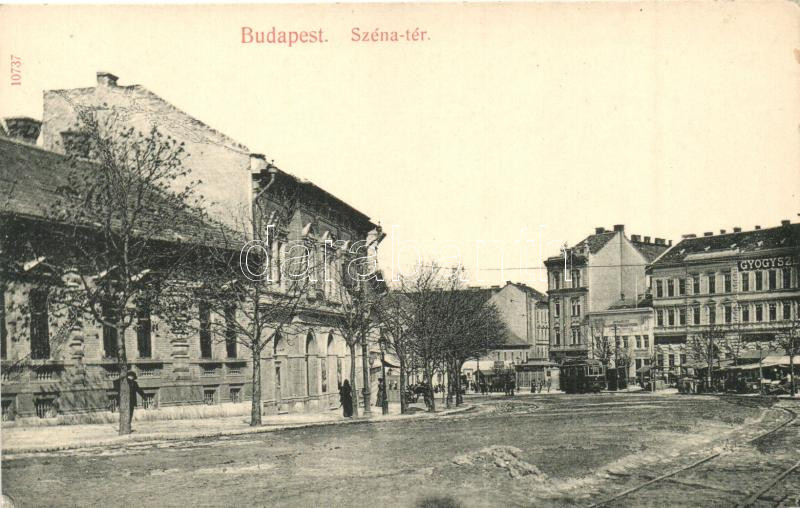Budapest II. Széna tér, gyógyszertár, villamos, Taussig A. https://www.darabanth.com/hu/279-Gyorsarveres/279.0/Kepeslapok/Magyarorszag~200005/Budapest-II-Szena-ter-gyogyszertar-villamos-Taussig-A~II1437515