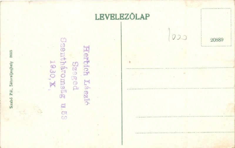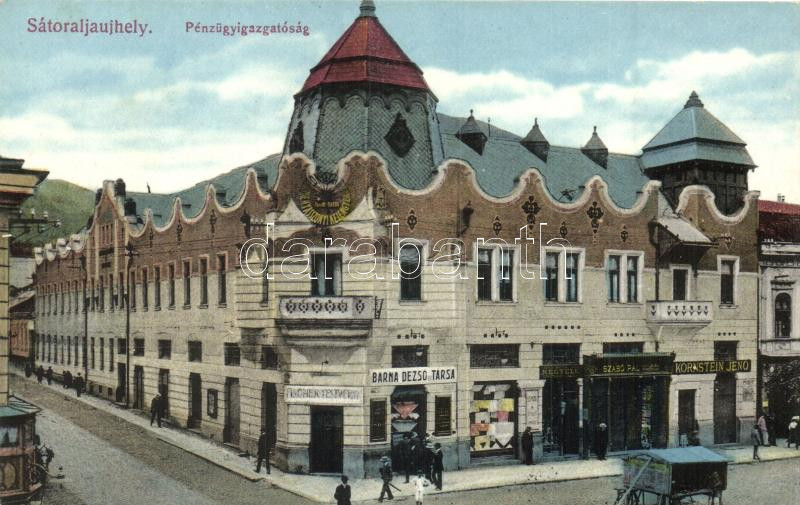 Sátoraljaújhely, Pénzügyigazgatóság, Fischer Testvérek, Barna Dezső és Társa, Szabó Pál, Kornstein Jenő és Kegyelet üzlet, hátoldalon Herbich László pecséttel; kiadja Szabó Pál