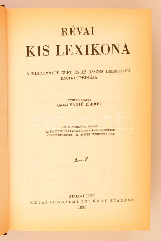 Révai Kis Lexikona. A mindennapi élet és az összes ismeretek enciklopédiája. Szerk.: Csekei Varjú Elemér. Budapest, 1991, Merchavia Kft. Hasonmás kiadás. Kiadói műbőr kötés. Szép állapotban.