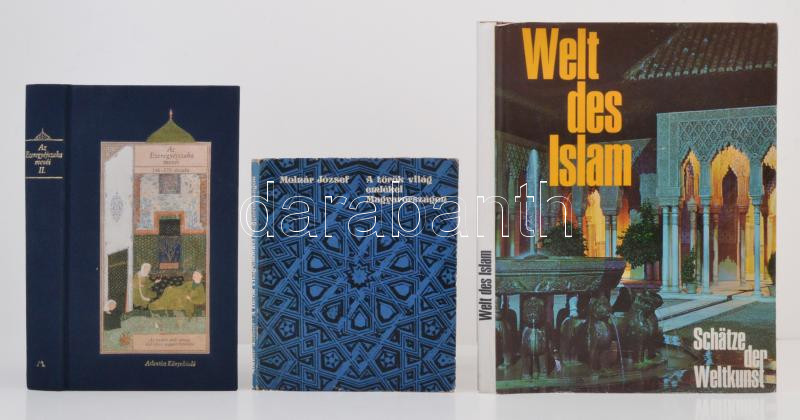 Leírás: Vegyes, az iszlám kultúrával kapcsolatos könyvek, 3db: Az Ezeregyéjszaka meséi. Molnár József: a török világ emlékei Magyarországon. Welt des Islam.