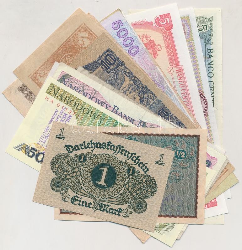 Leírás: Vegyes 17db-os bankjegy tétel, közte venezuelai, costa ricai, lengye, ugandai, horvát, kolumbibai, brit, román és osztrák bankjegyek T:vegyes