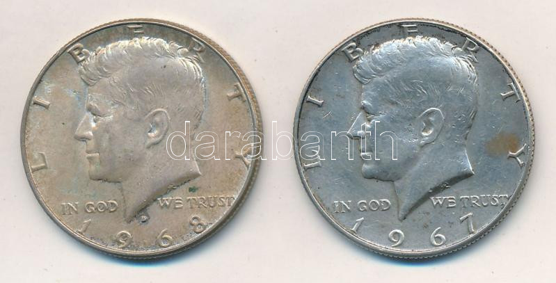 Amerikai Egyesült Államok 1967-1968D 1/2$ Ag "Kennedy" (2X) T:2 apró ph., patina