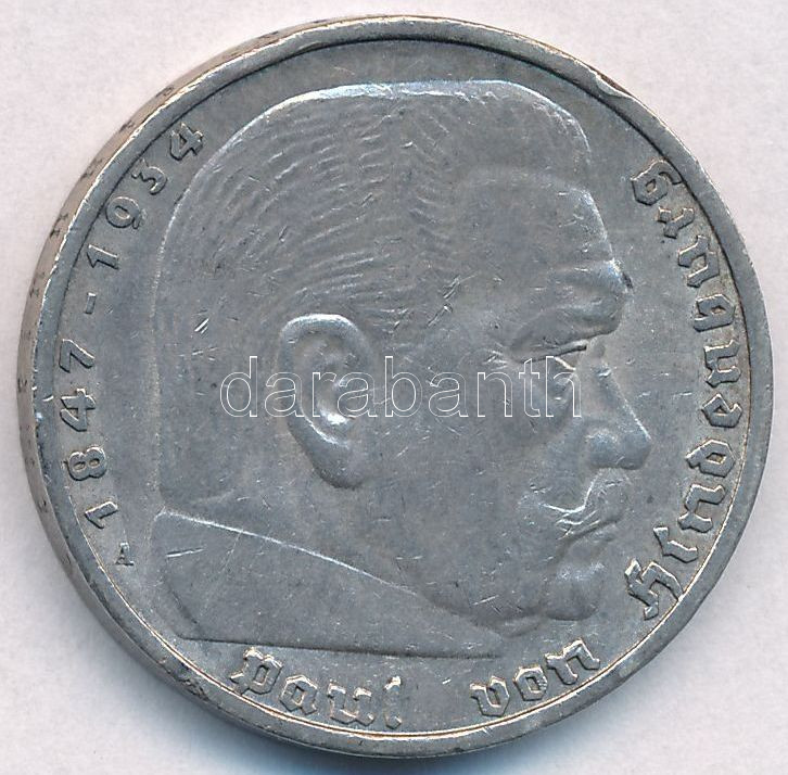 German Third ... https://www.darabanth.com/hu/279-Gyorsarveres/279.0/Numizmatika/Kulfoldi-fem-es-ezustpenzek~300015/Nemet-3-Birodalom-1936A-5M-Ag-Hindenburg-T2-2-ph---German-Third-Reich-1936A-5-Mark-Ag-Hinden~II1435452