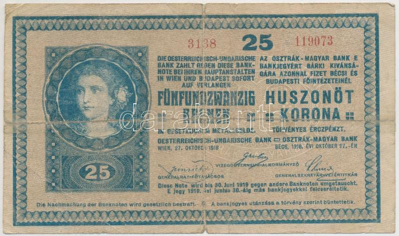1918. 25K "3138" 3mm, hullámos hátlap T:IV ragasztott Adamo K22/3 https://www.darabanth.com/hu/279-Gyorsarveres/279.0/Numizmatika/Magyar-bankjegyek~300007/1918-25K-3138-3mm-hullamos-hatlap-TIV-ragasztott-Adamo-K223~II1434029