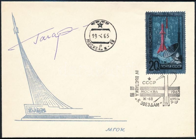 Jurij Alekszejevics Gagarin (1934-1968) szovjet űrhajós aláírása emlékborítékon / Signature of Yuriy Alekseyevich Gagarin (1934-1968) Soviet astronaut on envelope