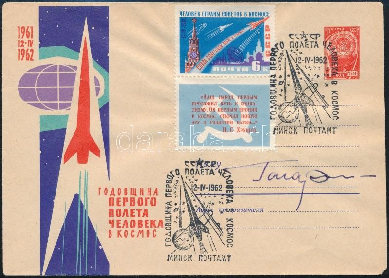 Jurij Alekszejevics Gagarin (1934-1968) szovjet űrhajós aláírása emlékborítékon /