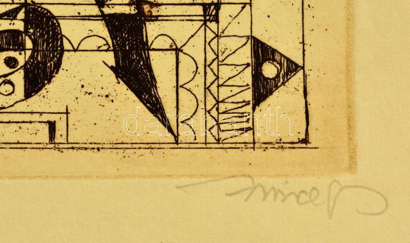 Leírás: Hincz Gyula (1904-1986): Kompozíció. Rézkarc, papír, jelzett, 29×39 cm