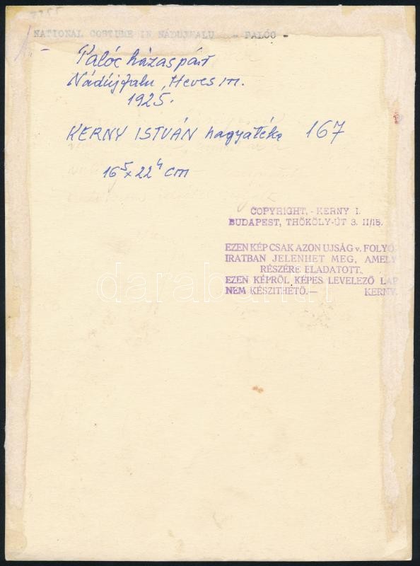 1925 Kerny István (1879-1963): Palóc házaspár, színezett, lakkozott vi... https://www.darabanth.com/hu/28-Nagyaukcio/28.1/Festmeny-mutargy-papirregiseg-egyeb/Foto~11241/1925-Kerny-Istvan-1879-1963-Paloc-hazaspar-szinezett-lakkozott-vintage-foto-22x16-cm~II1664732